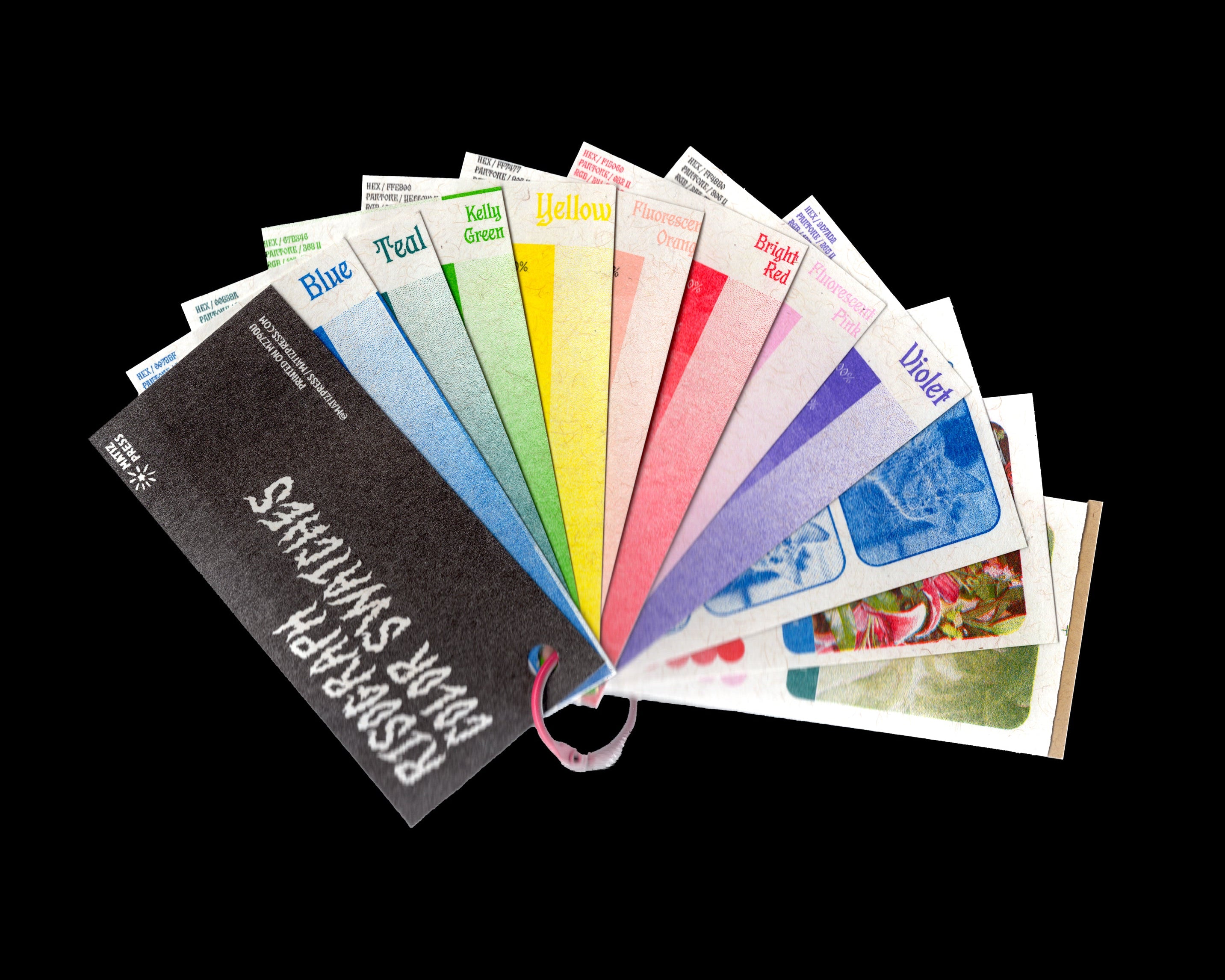 At Matiz Press, we have 10 color options (more soon, we hope!). These include Blue, Teal, Kelly Green, Yellow, Sunflower, Fluorescent Orange, Bright Red, Fluorescent Pink, Violet, and Black.